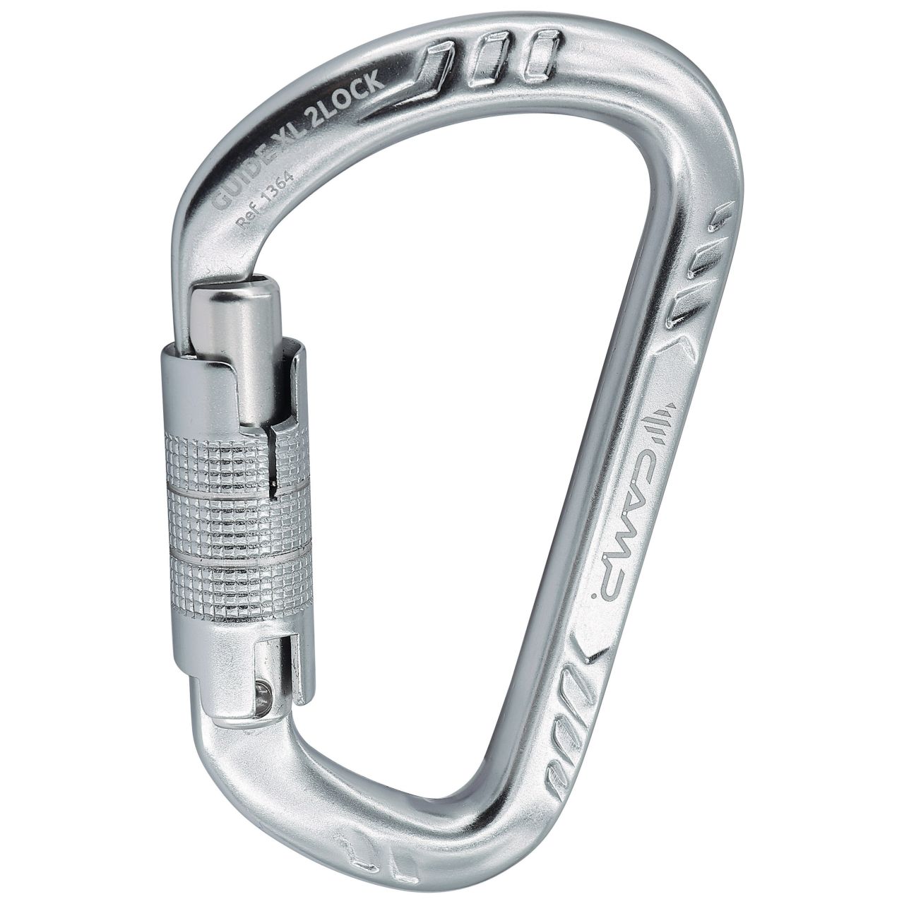 The Guide XL carabiner with a 2-stage automatic twist lock closure. The Guide XL is an oversized version of CAMP’s popular Guide carabiner with a unique shape that gives it an excellent strength-to-weight ratio and a huge gate opening for easy handling with ropes and rigging. An excellent choice for anchors and rigging.