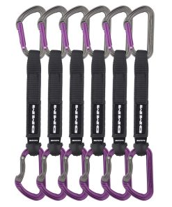 The DMM Shadow is a classic solid-gate sport climbing quickdraw, and it’s pretty sweet. It’s super-strong, durable enough for hours of hangdogging, and features a keylock nose to reduce snagging and a CNC’d thumb recess on the plain gate to aid clipping. Built with DMM’s trademark attention to detail. Includes six 18cm quickdraws.