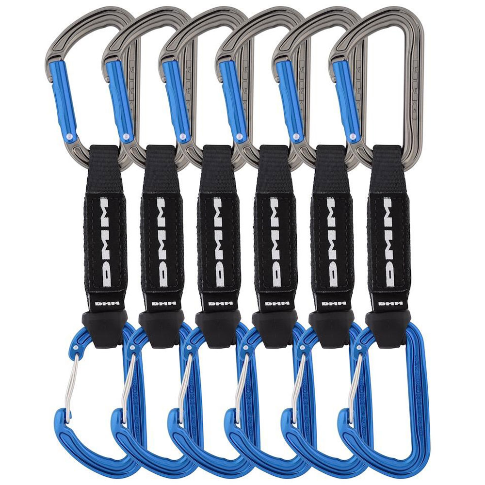 A Shadow Straight / Spectre pairing on a vari-width quickdraw for long sport routes where weight saving is a priority. Includes six 12cm quickdraws.