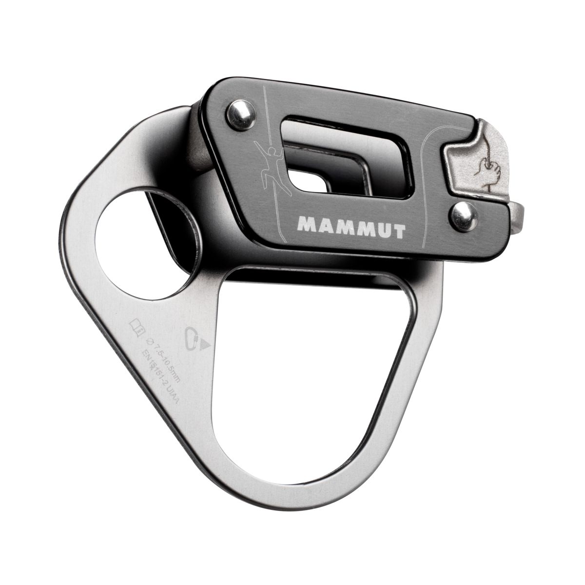 Mammut Nordwand Alpine Belay: an innovative and robust belay device with V-shaped grooves and rear rope-bearing surfaces made of abrasion-resistant steel to prevent wear. The steel insert also prevents the belay device from overheating. The housing is made from lightweight aluminum, so that the total weight of the device amounts to just 80 grams. Suitable for double, half and single ropes ranging from 7.5 to 10.5 mm.