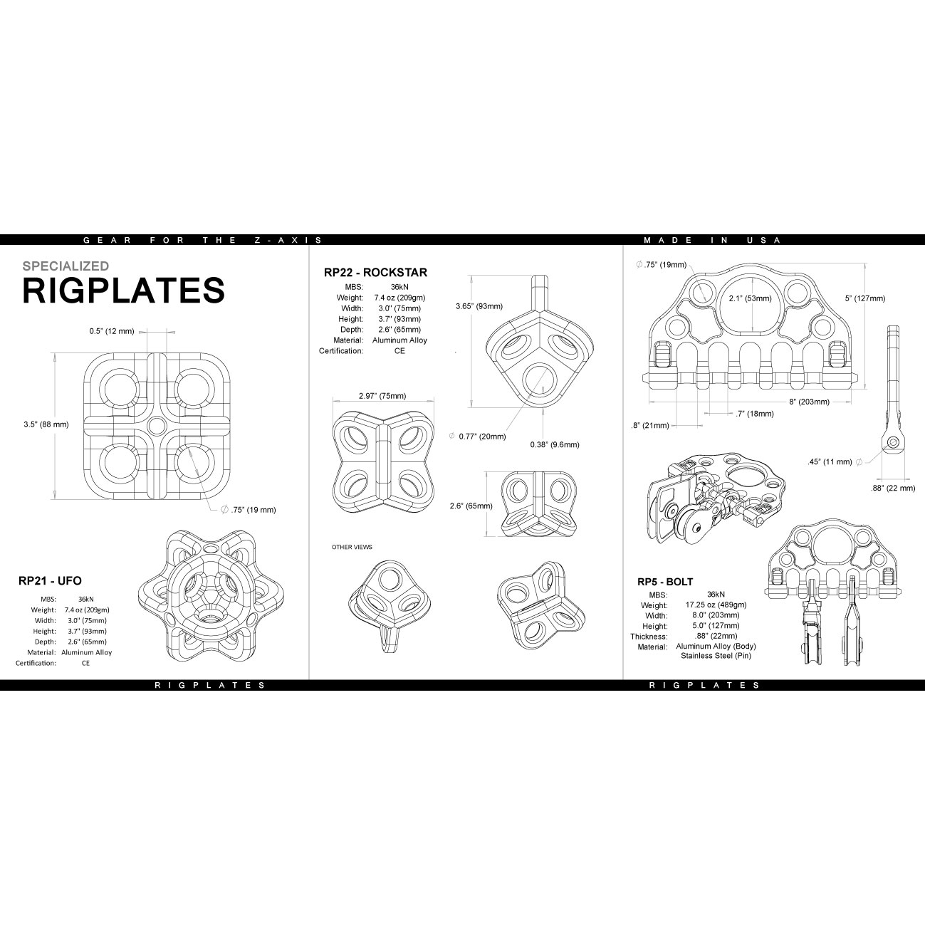 Rock Exotica says it best themselves: “Rock Exotica introduced the first production rig plate at the International Rescue Symposium way back in the late eighties. Our plates are the best and are milled from oversize material so that ALL surfaces are machined, even the faces, for flatness, surface defect removal and precise dimensions. All edges are beautifully rounded with carbide milling cutters for a full, smooth radius unobtainable by tumbling alone.