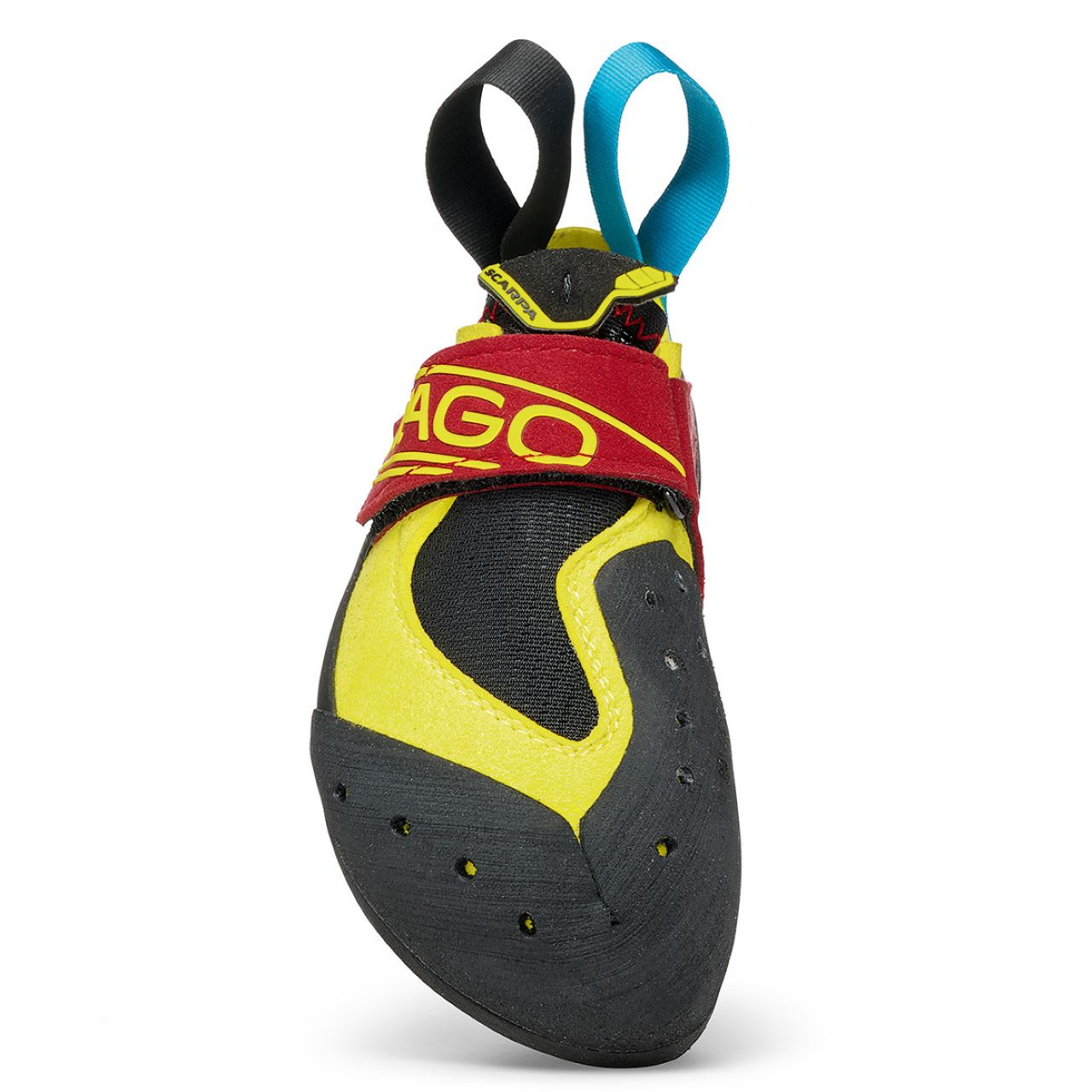 The Scarpa Drago Kid is a sensitive slipper, the perfect choice for youth climbers wanting to push their limits. It has extended rubber coverage on both the toe and the heel, ideal for all hooking possibilities. Asymmetrical and downturned shape with a medium- to high-angled toe box for excellent toe sensitivity. Soft materials in the upper reduce pressure on delicate growing feet.