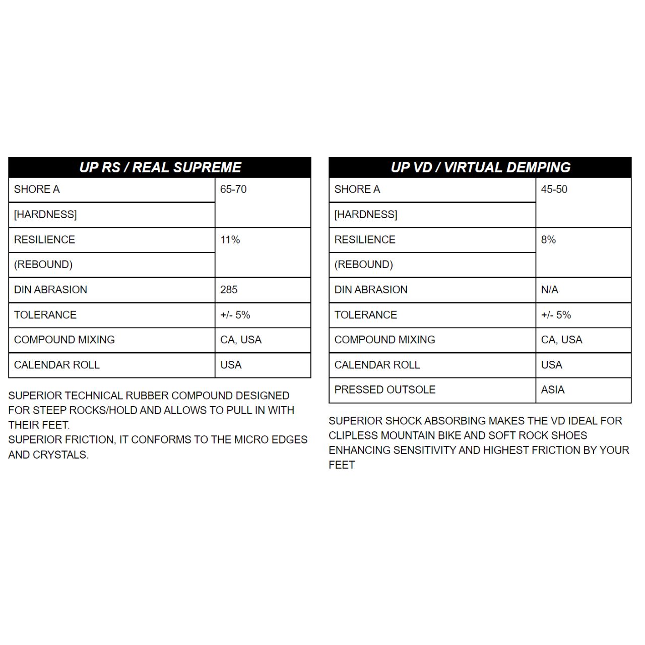 - 2.5 mm VD rubber/3.5 mm RS rubber split sole