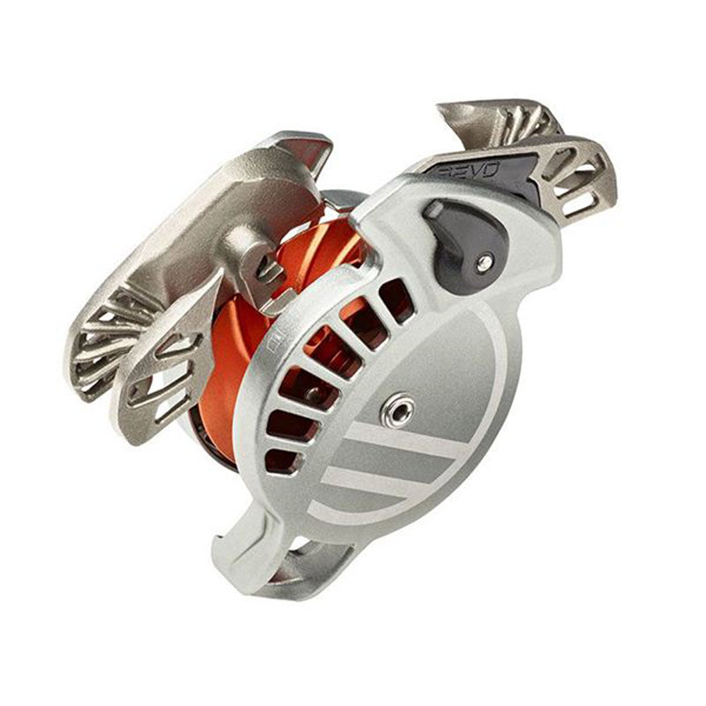 — Has a completely panic-proof locking mechanism. The Revo has no method of overriding the locking mechanism, during belaying, or when lowering a climber